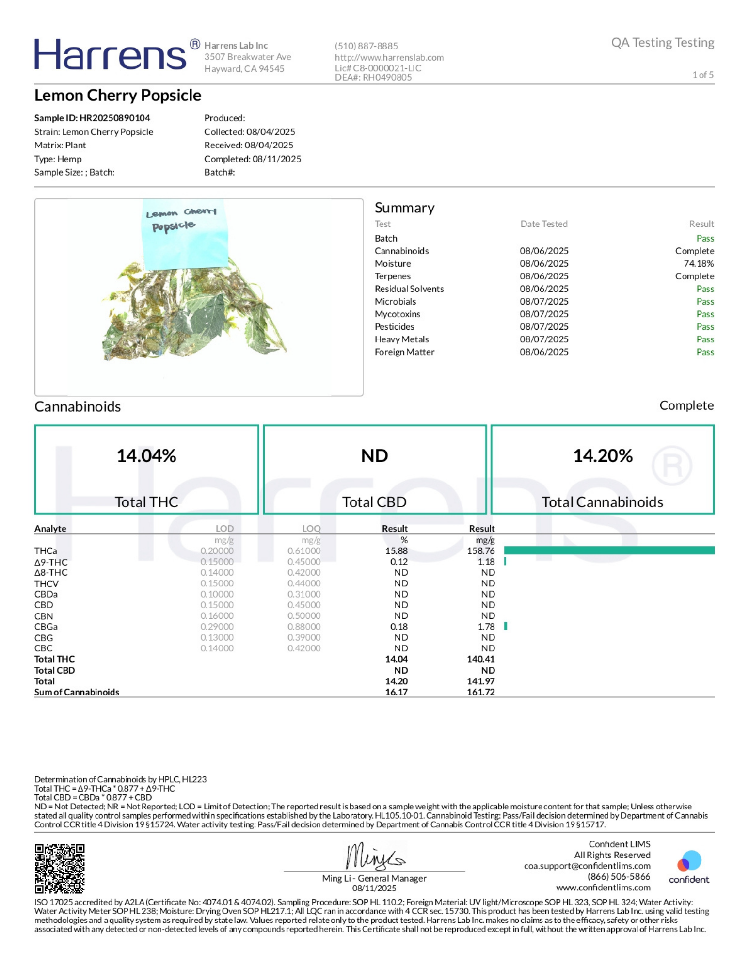 🔹 THCA Potency: 14.04% THCA (lab-tested, COA available)