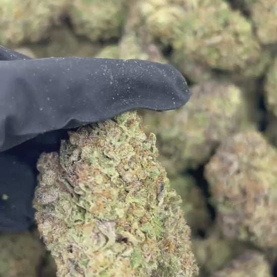 🔹 Bud Structure: Dense, Frosted, Purple-Streaked, Medium to Small Size