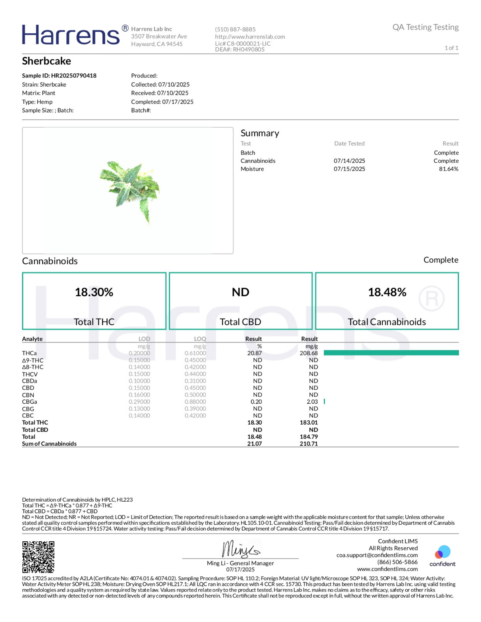 Order High Score's Sherbcake THCA flower for wholesale delivery. Third-party lab tested. Contact us for bulk THCA flower pricing.